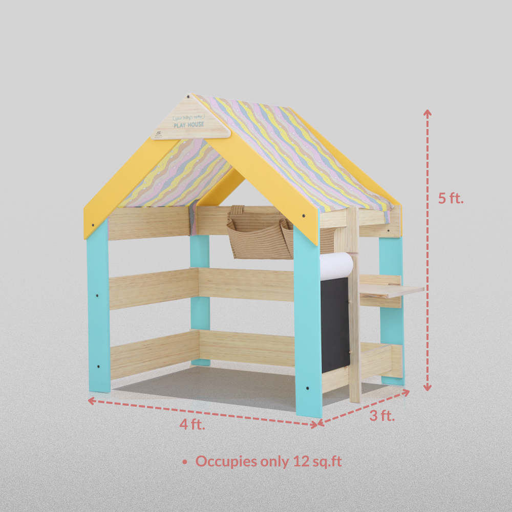 Ariro’s Play house also functions as a secure space to store all their beloved toys, helping to instill a sense of responsibility and order from an early age. It’s more than just a playhouse; it’s a space where your child can develop their individuality, expressing who they are through the activities they love. Despite its comprehensive features, the setup is easy to assemble and occupies only 12 square feet, making it a practical addition to any home.