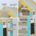Additionally, the playhouse features an elegant counter that serves multiple purposes—whether it’s for pretend play, meal times, or as a writing corner, it adapts to your child’s evolving needs. The blackboard is another creative outlet, providing a space for doodling, writing, and exploring new ideas. Every element is hand-crafted using the safest and sturdiest materials, ensuring that it not only stands the test of time but also keeps your child safe as they play.