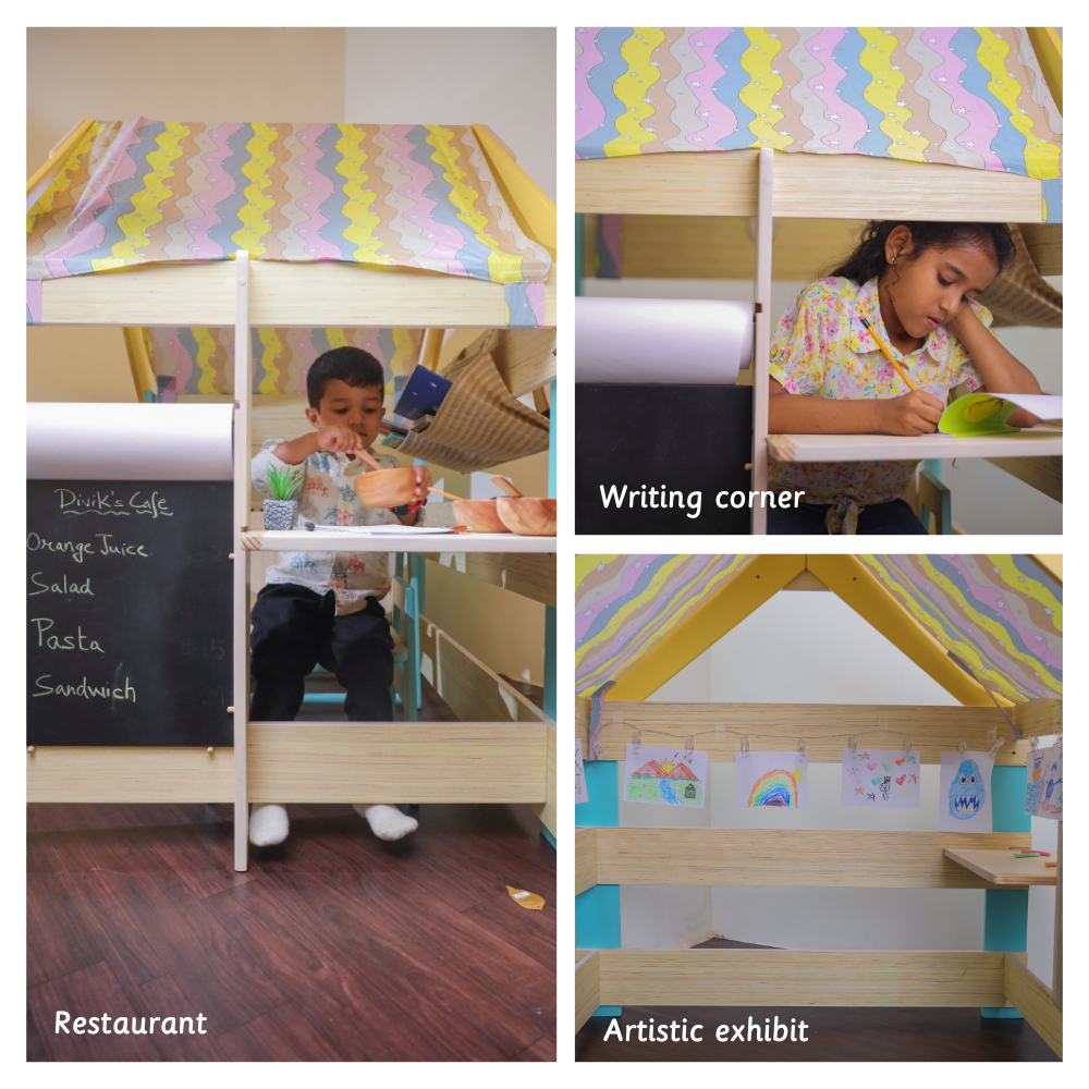 The Play House fosters creativity by giving children a space to create their own worlds. It encourages independence as they explore and develop their imagination through self-directed play.