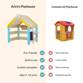 The Play House provides a shared space for cooperative play, enhancing social skills, teamwork, and communication as children collaborate, share, and take turns in group settings.