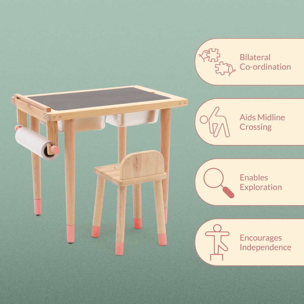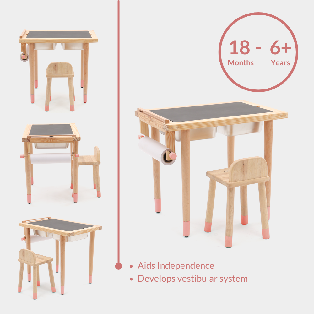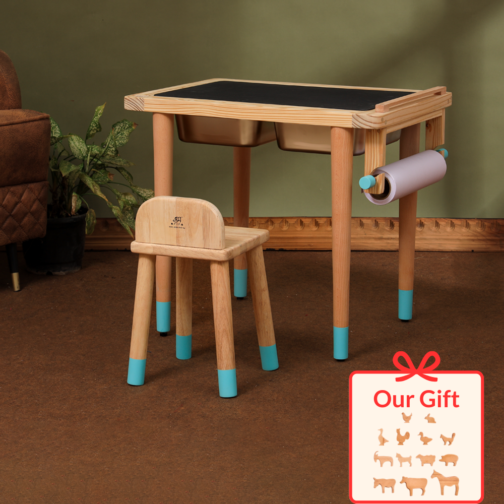 The Sensory Table gives them a dedicated space to explore, experiment, and make a mess — without making a mess everywhere. And the Stool adds the perfect support for their little bodies to sit, reach, and focus without fatigue.