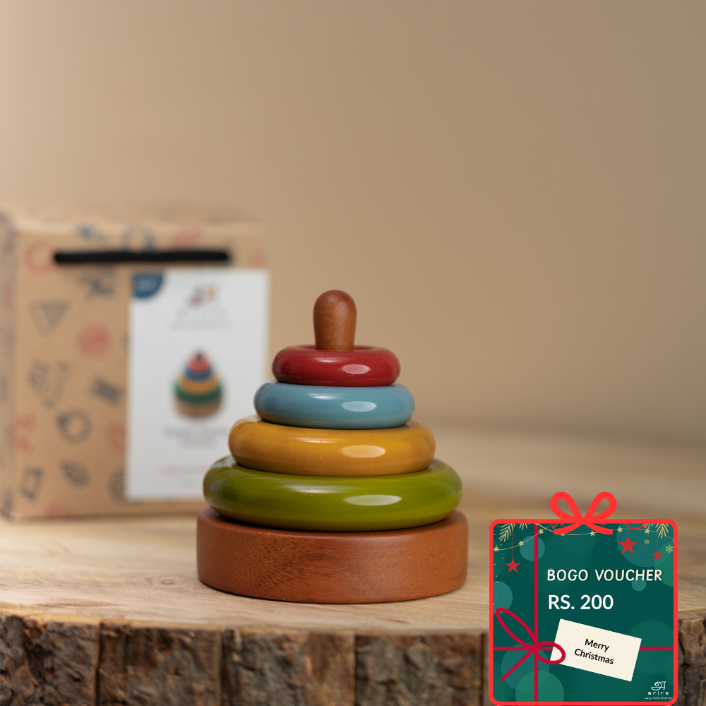 When children sit and stack they are doing more than just playing. They are exploring and solving. For toddlers stacking toys you introduce ought to be simple with clear goals and not overwhelming or burdening. Introducing one ring and gradually increasing the number of rings is recommended.