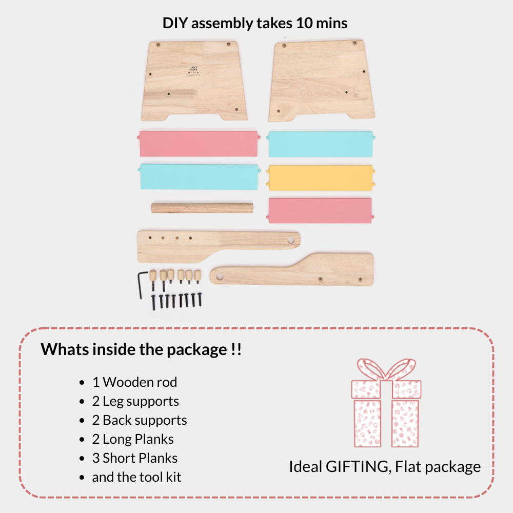 It helps children understand their body better every time they try to sit or stand on the stool hence aiding them in a complete cognitive development. Being able to help themselves will be their first biggest achievement which calms a child and boosts their confidence. The sturdiness of the stool ensures safety and longevity of the product. Painted with child safe pastel shades they will fit into the nursery like a glove.