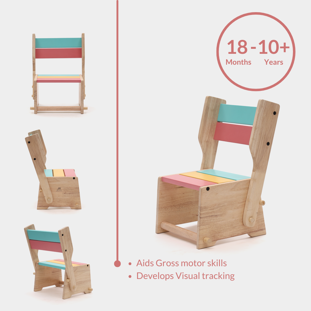 This versatile stool transforms into a chair and table, encouraging kids to explore new activities and experiment safely. Whether reaching the counter or sitting to read, it supports their cognitive development and understanding of their body’s capabilities.